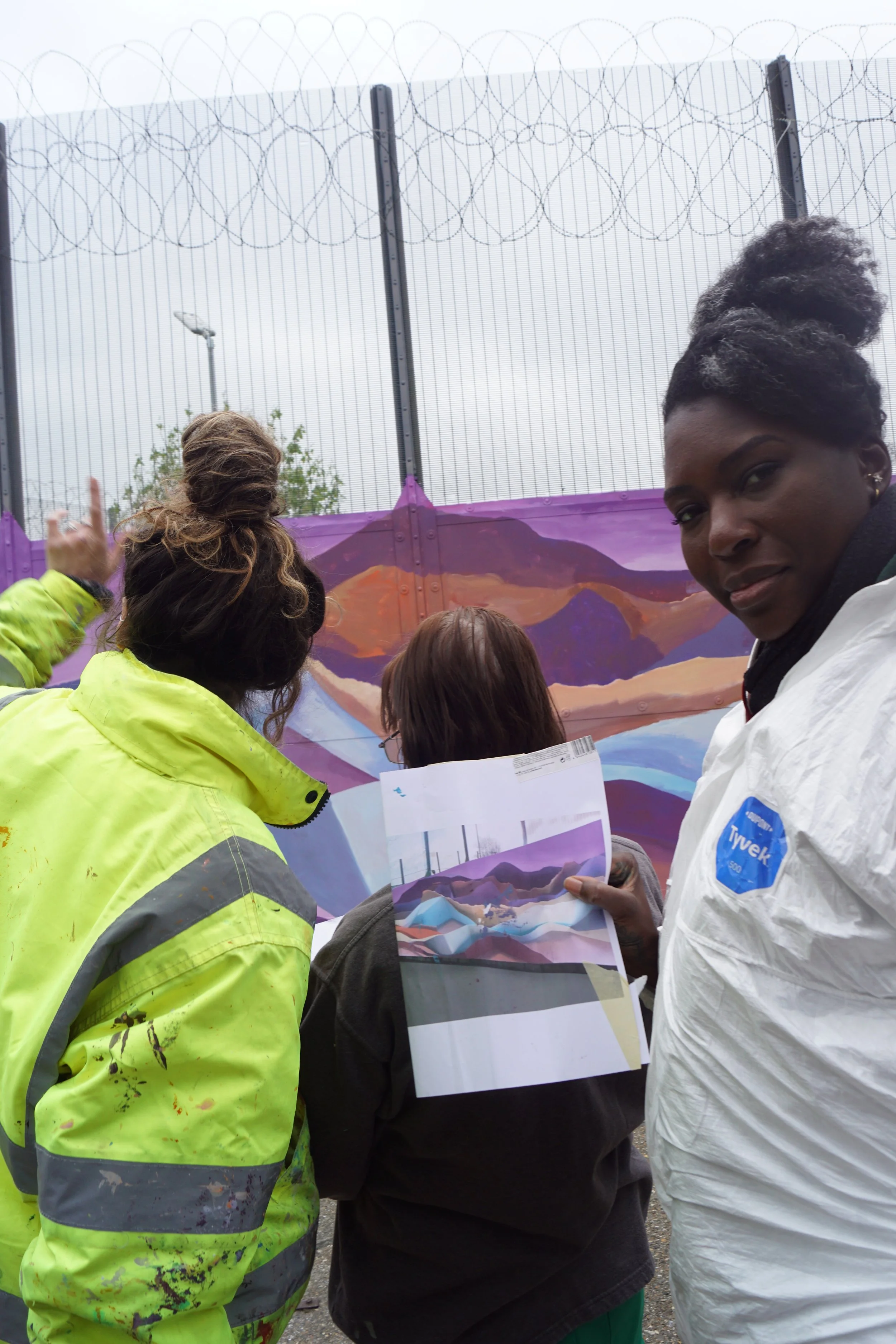 In 2025, I joined the London School of Muralism. As part of the course, I took part in a special project at HMP Downview, working alongside fellow students and a group of women in prison to create a large-scale mural.